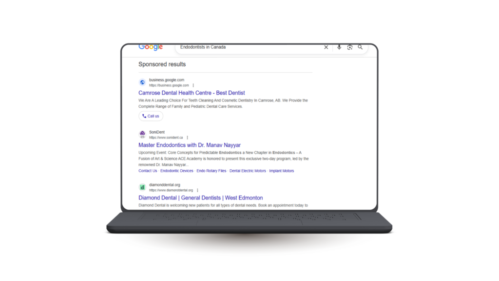 Once visibility and trust are established, the next step is actively acquiring patients. Google Ads allow endodontists to appear exactly when someone searches for treatments like root canals, retreatments, or apicoectomies—when intent is high.