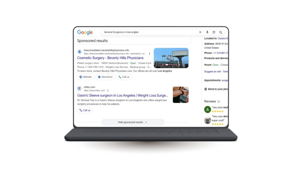 Once visibility and trust are in place, the next focus is active patient acquisition. Google Ads allow general surgeons to appear at the exact moment patients search for procedures they already need.