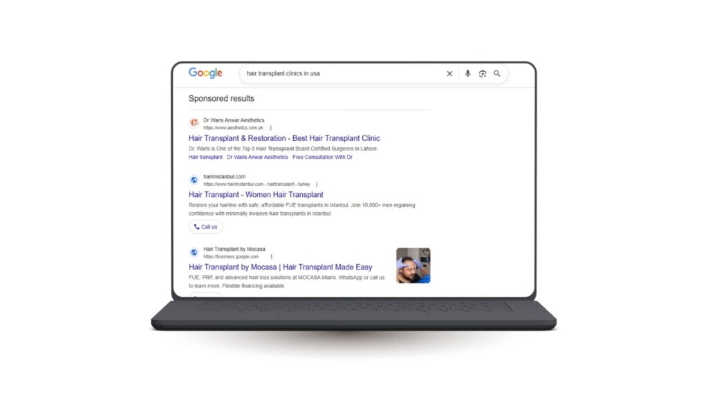 ● Searching on Google or Google Maps for nearby or destination hair transplant clinics