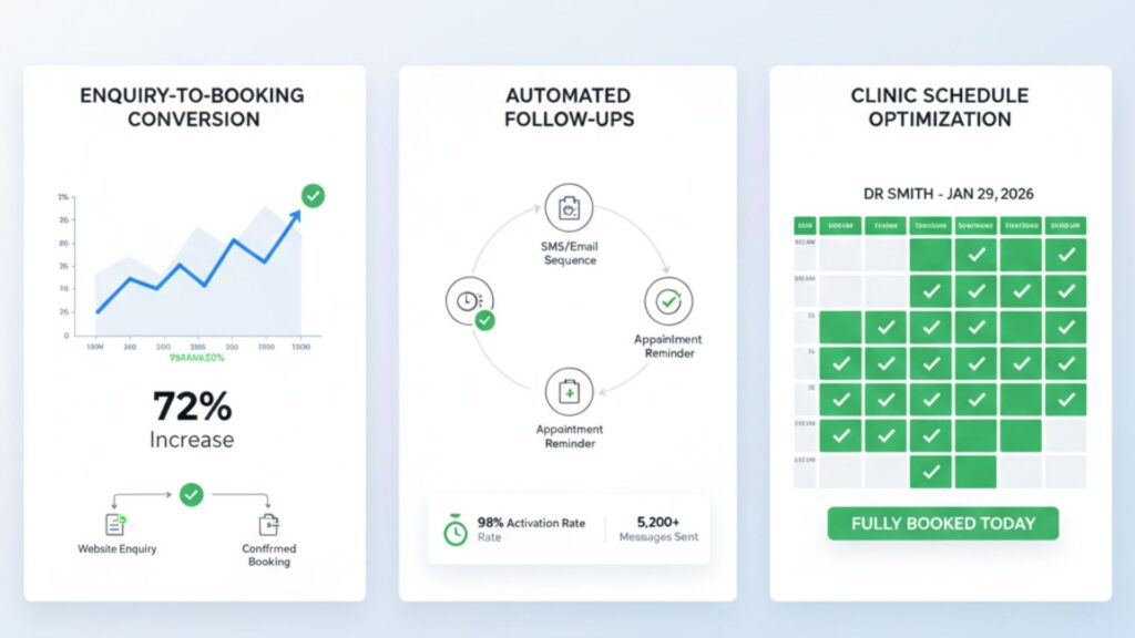 Most clinics believe that getting more traffic is enough. The real problem lies between enquiry and booking. Empty slots, missed calls, leads going cold, and staff juggling messages manually are costing you revenue every single day.