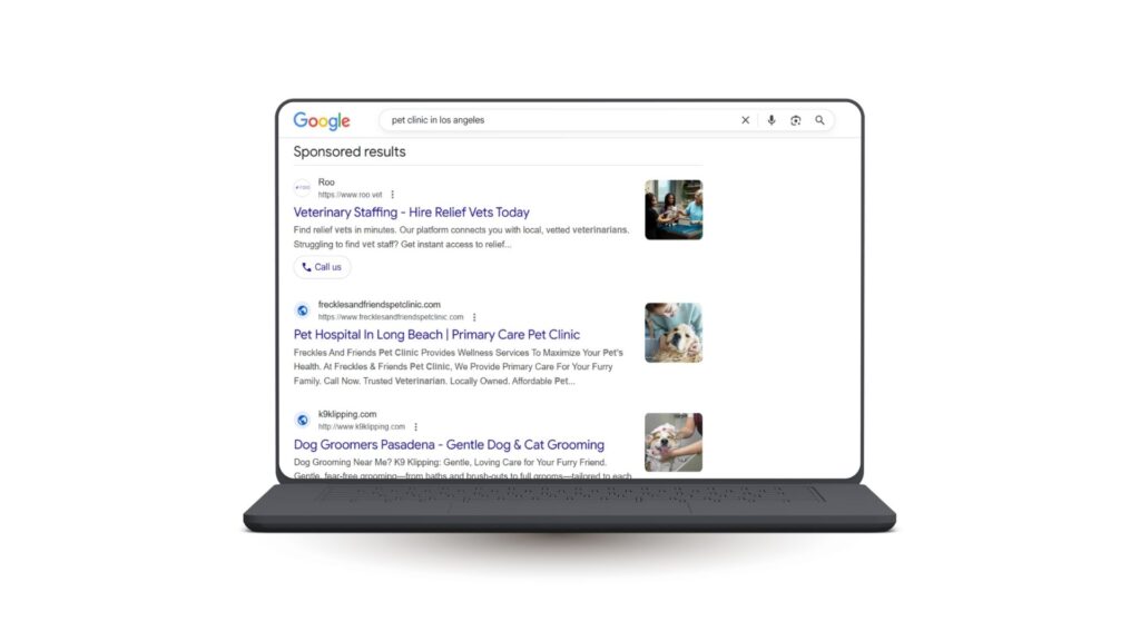 Once visibility and trust are in place, the next focus is active client acquisition. Google Ads allow pet clinics to appear at the exact moment clients search for treatments their pets already need.
