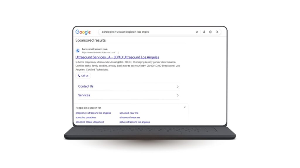 Once visibility and trust are in place, the next focus is active patient acquisition. Google Ads allow sonologists to appear at the exact moment patients search for imaging services they already need.